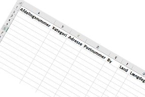 Hvis du gerne vil uploade flere afdelinger på én gang, kan dette gøres ved hjælp af et Excel-ark. I arket skal du for hver afdeling specificere: